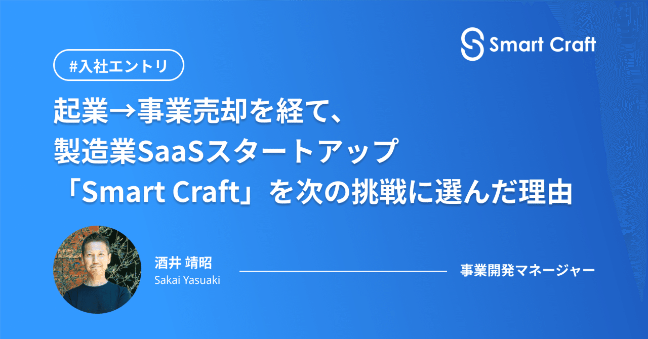 起業→事業売却を経て、製造業SaaSスタートアップ「Smart Craft」を次の挑戦に選んだ理由